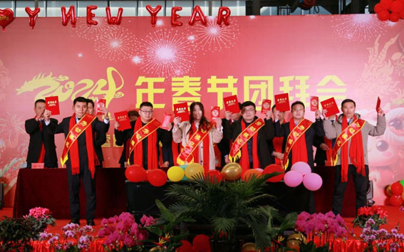 新春佳節(jié),是團(tuán)圓與慶祝的時(shí)刻,也是回顧與展望的交匯點(diǎn),在這辭舊迎新的美好時(shí)刻,公司舉辦了一場(chǎng)別開(kāi)生面的春節(jié)團(tuán)拜會(huì),年會(huì)現(xiàn)場(chǎng)被裝飾得如詩(shī)如畫,璀璨的燈光映照在每個(gè)角落,營(yíng)造出溫馨而熱烈的氛圍,員工們齊聚一堂,共同慶祝這一盛事?偨(jīng)理羅賢峰首先發(fā)表了新年致辭,羅總經(jīng)理向全體員工一年的辛勤付出表示感謝,并為大家送上了新春祝福。